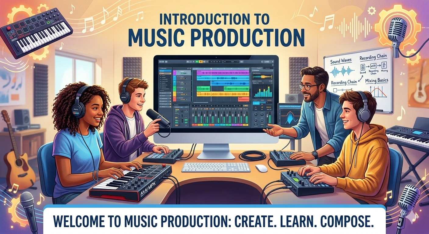 This course is designed for beginners who want to step into the world of music production and learn how to create professional-quality music from scratch. It introduces the fundamental concepts of digital music creation, including sound design, recording, editing, and mixing using modern tools and software.