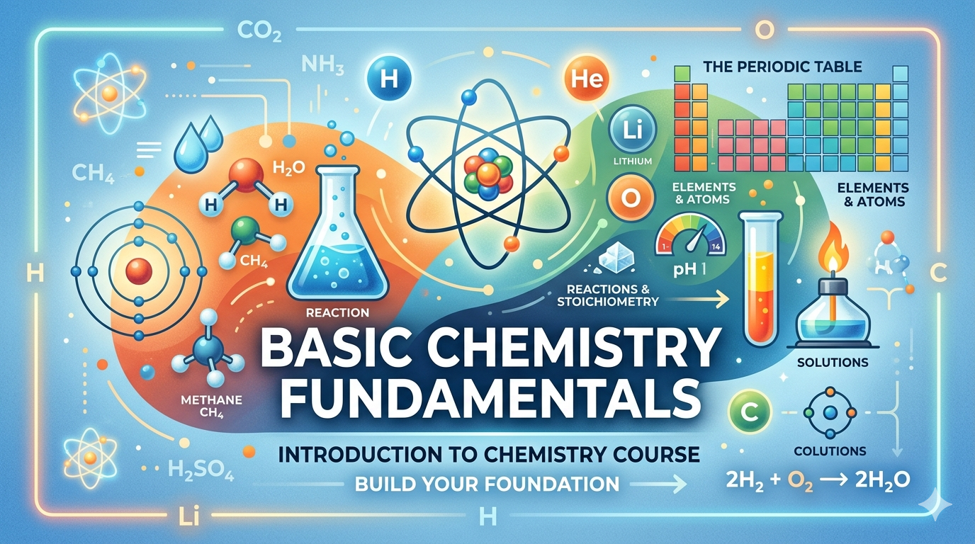 This course provides a comprehensive introduction to the fundamental concepts of chemistry, designed for beginners and learners looking to strengthen their foundation. It explores the building blocks of matter, including atoms, molecules, and chemical reactions, while explaining how substances interact in everyday life.