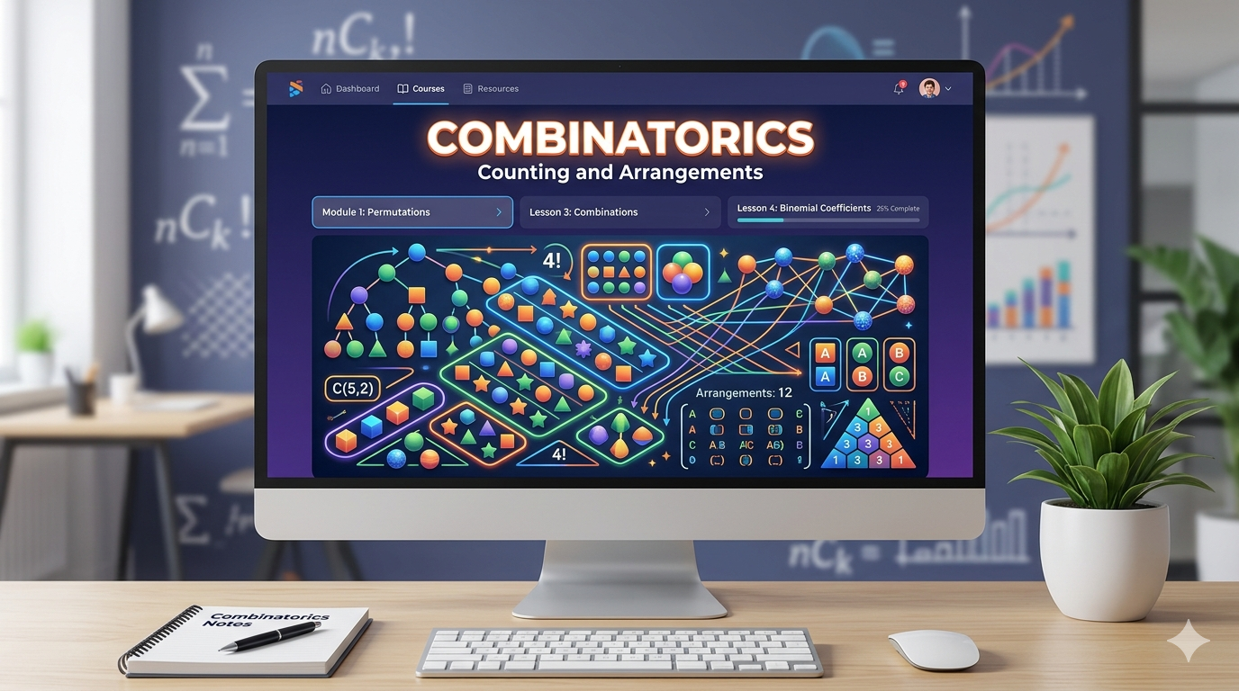 Combinatorics: Counting and Arrangements is designed to help learners understand how to count, arrange, and select objects in different mathematical situations. This branch of mathematics is essential for probability, computer science, and logical reasoning.