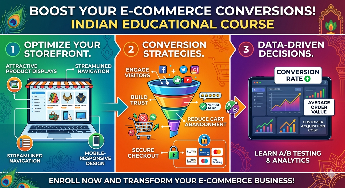 Learn to grow e-commerce stores and maximize conversions. This course covers website optimization, product pages, paid ads, email marketing, analytics, and A/B testing. Work on practical projects to implement strategies that increase traffic, sales, and revenue.