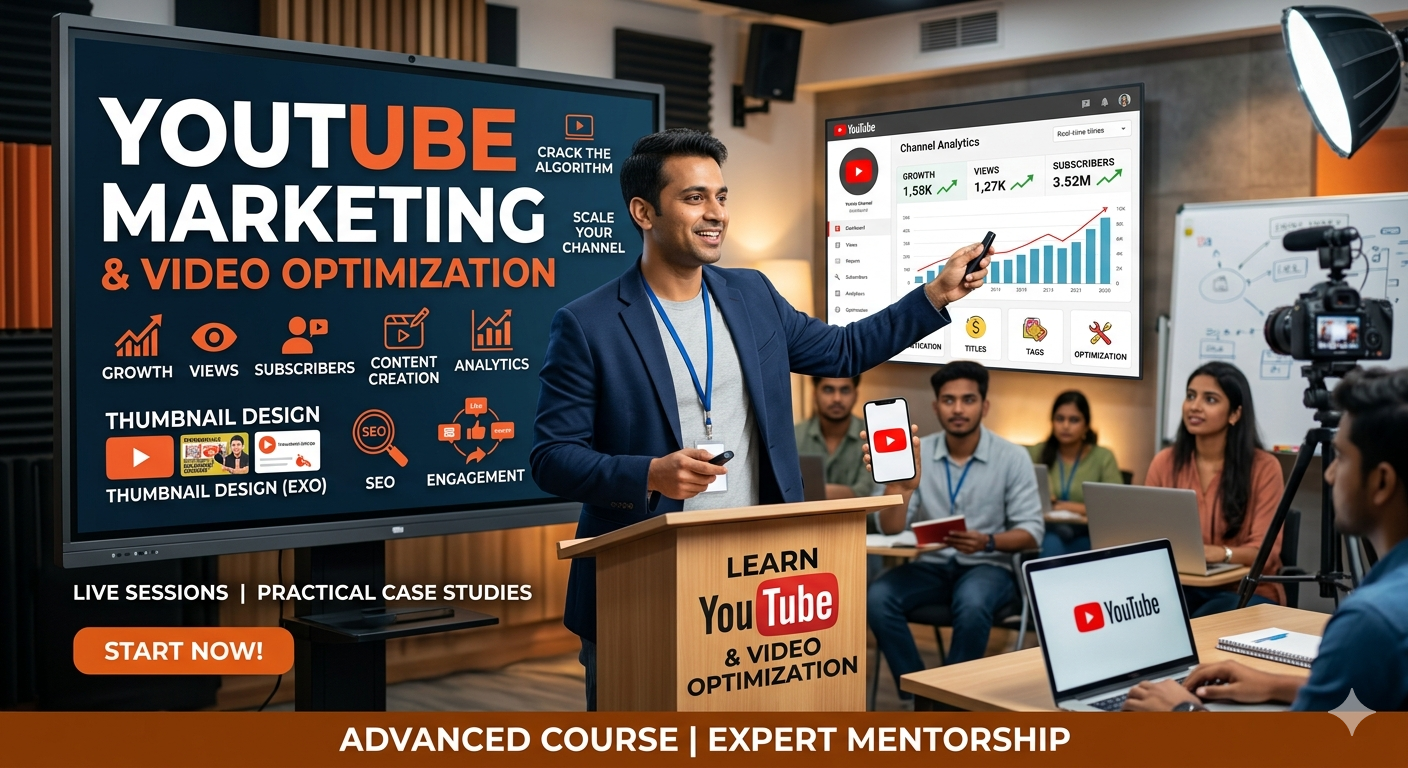 Learn to grow a YouTube channel and optimize video content for maximum reach and engagement. This course covers video SEO, audience growth strategies, analytics, and monetization. Work on real-world projects to increase subscribers, views, and engagement effectively.
